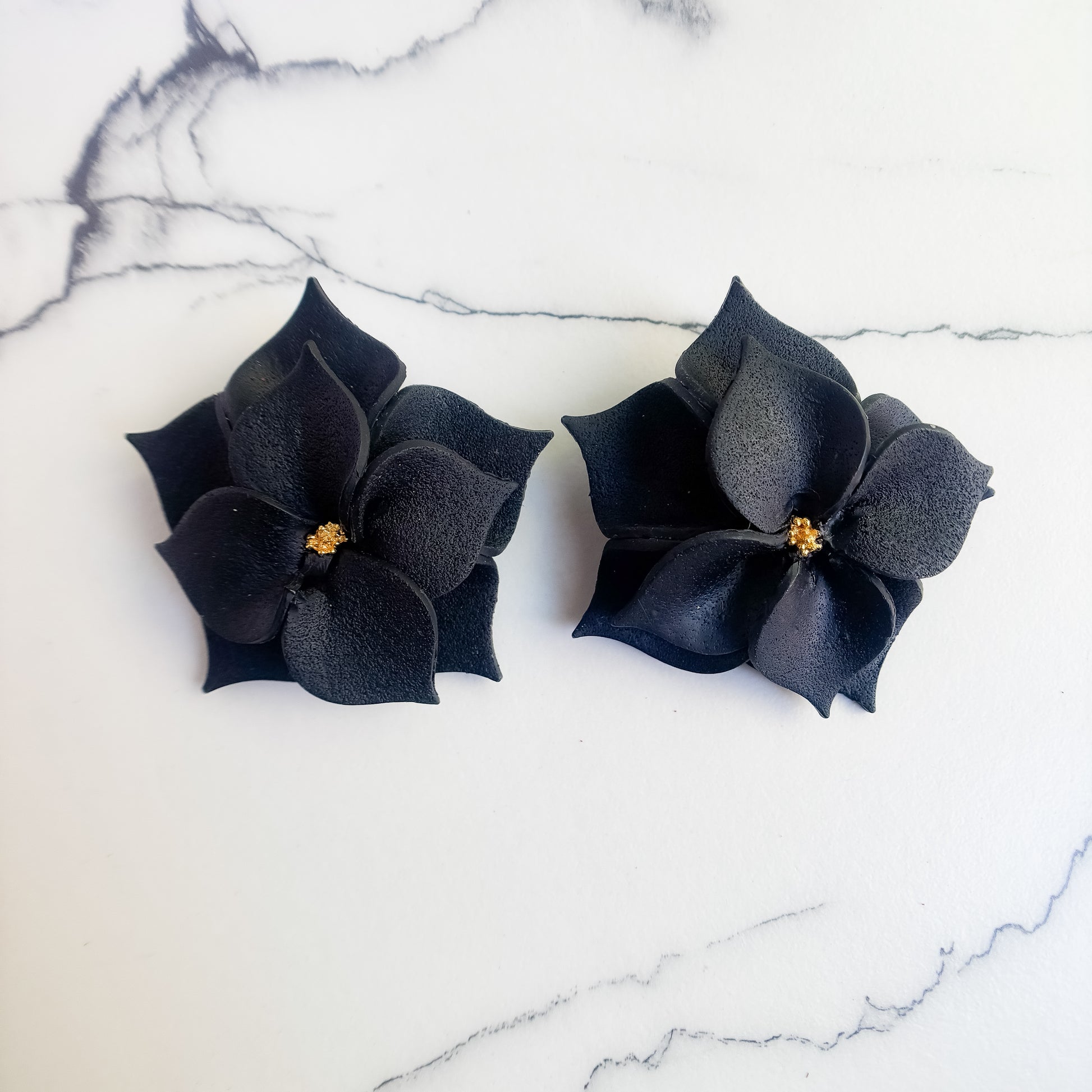 Style: Bold floral earrings, luxury clay jewelry, statement stud earrings